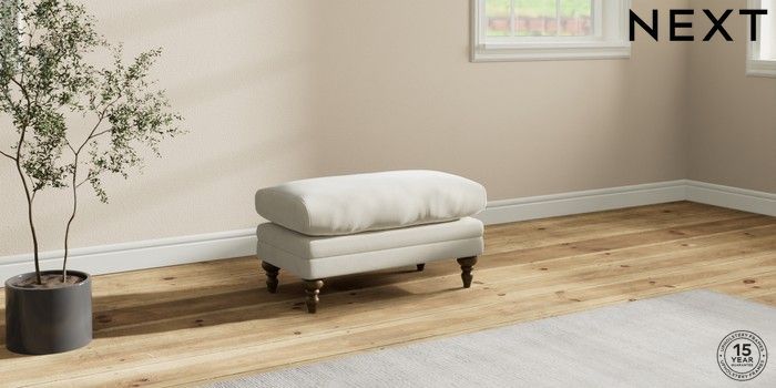 7.2.10 Hutton Deep Relaxed Sit Footstool Luxe Chenille Oyster High Turned - Mid | Made Click here to use our website with more accessibility support, for example screen readers