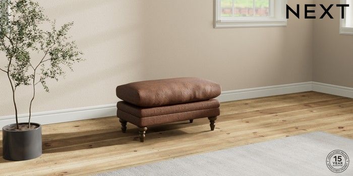 7.2.10 Hutton Deep Relaxed Sit Footstool Monza Faux Leather Easy Clean Chestnut Brown High Turned - Mid | Made Click here to use our website with more accessibility support, for example screen readers
