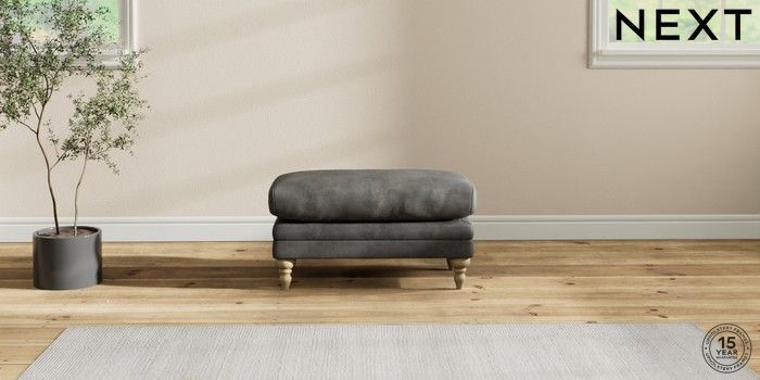 7.2.10 Hutton Deep Relaxed Sit Footstool Monza Faux Leather Easy Clean Dark Grey High Turned - Light | Made Click here to use our website with more accessibility support, for example screen readers