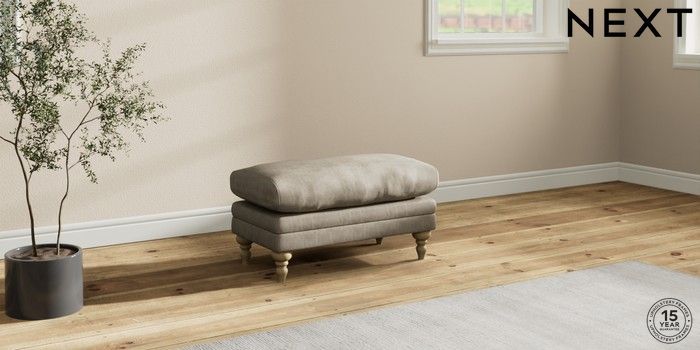7.2.10 Hutton Deep Relaxed Sit Footstool Monza Faux Leather Easy Clean Mink Brown High Turned - Light | Made Click here to use our website with more accessibility support, for example screen readers