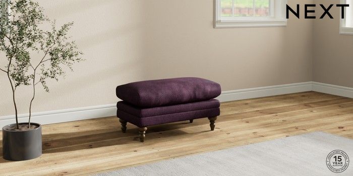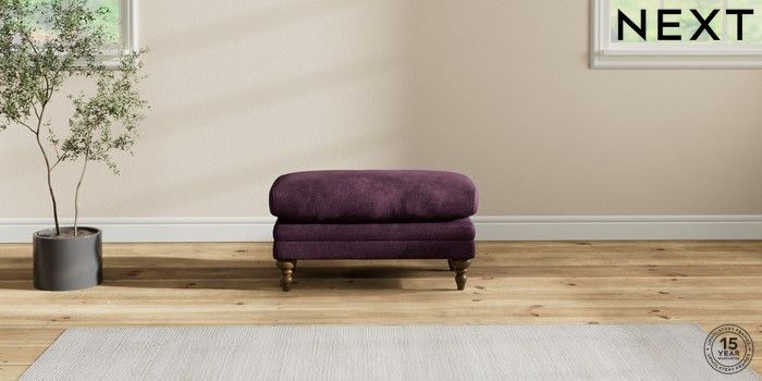 7.2.10 Hutton Deep Relaxed Sit Footstool Plush Chenille Dark Plum Purple High Turned - Mid | Made Click here to use our website with more accessibility support, for example screen readers