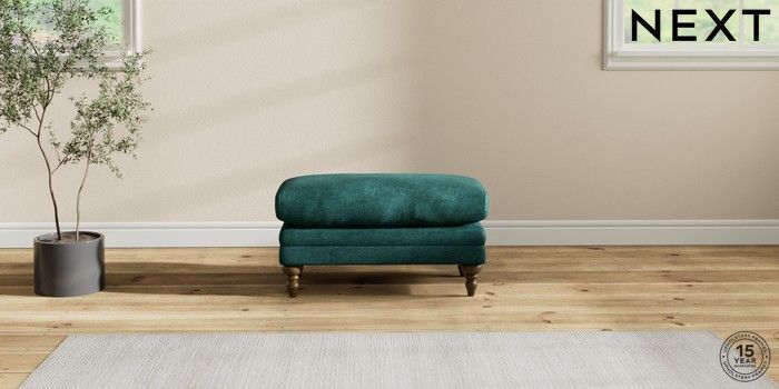 7.2.10 Hutton Deep Relaxed Sit Footstool Plush Chenille Dark Teal Green High Turned - Mid | Made Click here to use our website with more accessibility support, for example screen readers