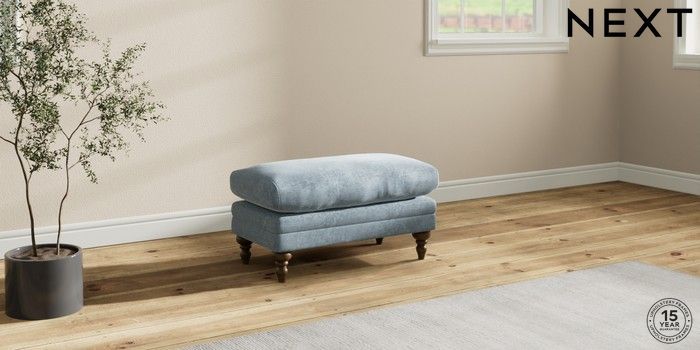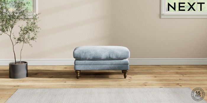 7.2.10 Hutton Deep Relaxed Sit Footstool Plush Chenille Light Blue High Turned - Mid | Made Click here to use our website with more accessibility support, for example screen readers
