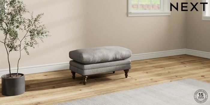 7.2.10 Hutton Deep Relaxed Sit Footstool Plush Chenille Light Grey High Turned - Mid | Made Click here to use our website with more accessibility support, for example screen readers