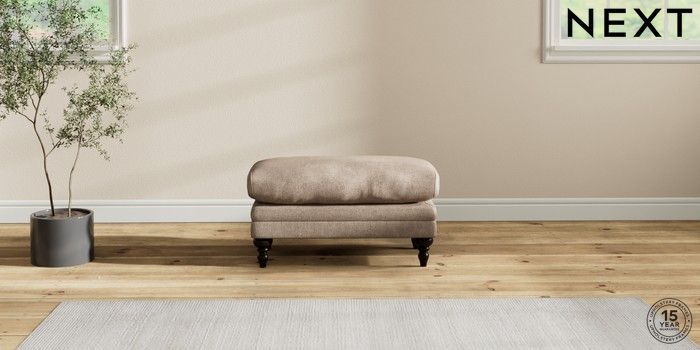 7.2.10 Hutton Deep Relaxed Sit Footstool Plush Chenille Mid Natural High Turned - Dark | Made Click here to use our website with more accessibility support, for example screen readers