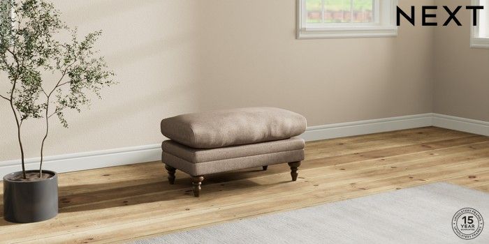 7.2.10 Hutton Deep Relaxed Sit Footstool Plush Chenille Mid Natural High Turned - Mid | Made Click here to use our website with more accessibility support, for example screen readers