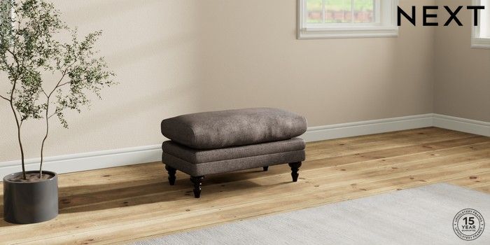 7.2.10 Hutton Deep Relaxed Sit Footstool Plush Chenille Mink Brown High Turned - Dark | Made Click here to use our website with more accessibility support, for example screen readers