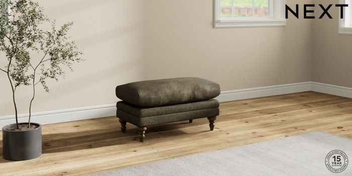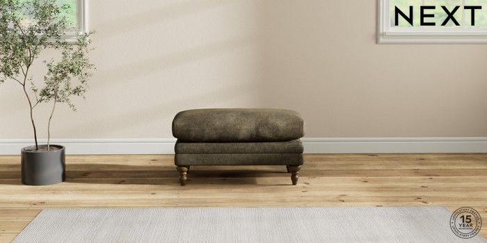 7.2.10 Hutton Deep Relaxed Sit Footstool Plush Chenille Moss Green High Turned - Mid | Made Click here to use our website with more accessibility support, for example screen readers