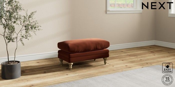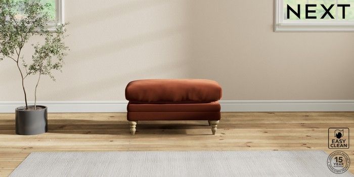 7.2.10 Hutton Deep Relaxed Sit Footstool Plush Velvet Easy Clean Ginger Orange High Turned - Light | Made Click here to use our website with more accessibility support, for example screen readers