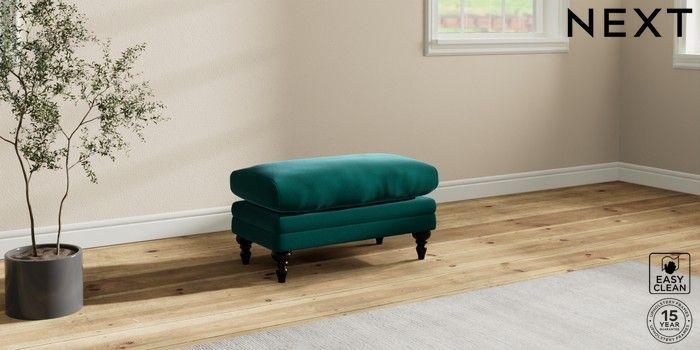7.2.10 Hutton Deep Relaxed Sit Footstool Plush Velvet Easy Clean Juniper Green High Turned - Dark | Made Click here to use our website with more accessibility support, for example screen readers