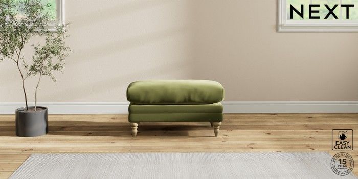 7.2.10 Hutton Deep Relaxed Sit Footstool Plush Velvet Easy Clean Mid Olive Green High Turned - Light | Made Click here to use our website with more accessibility support, for example screen readers