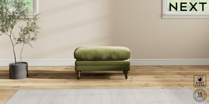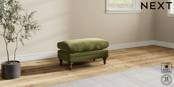 7.2.10 Hutton Deep Relaxed Sit Footstool Plush Velvet Easy Clean Mid Olive Green High Turned - Mid | Made Click here to use our website with more accessibility support, for example screen readers