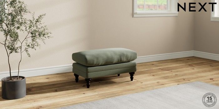 7.2.10 Hutton Deep Relaxed Sit Footstool Relaxed Linen Look Dark Green High Turned - Dark | Made Click here to use our website with more accessibility support, for example screen readers
