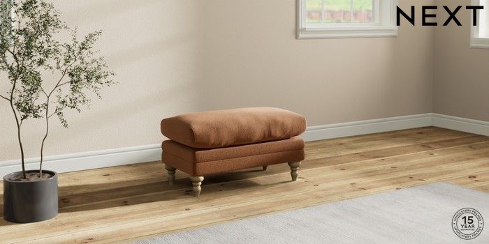 7.2.10 Hutton Deep Relaxed Sit Footstool Ripple Chenille Mid Rust Brown High Turned - Light | Made Click here to use our website with more accessibility support, for example screen readers
