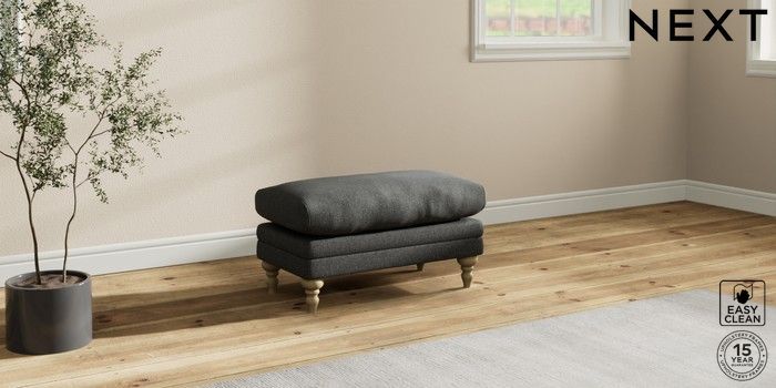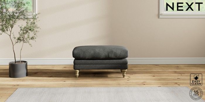 7.2.10 Hutton Deep Relaxed Sit Footstool Tweedy Blend Easy Clean Charcoal Grey High Turned - Light | Made Click here to use our website with more accessibility support, for example screen readers