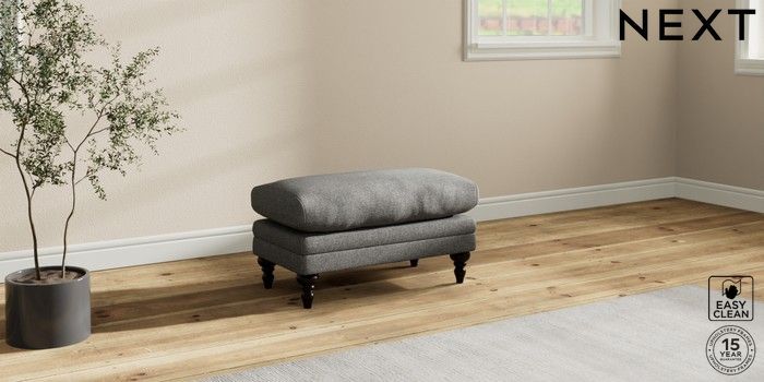7.2.10 Hutton Deep Relaxed Sit Footstool Tweedy Blend Easy Clean Dark Grey High Turned - Dark | Made Click here to use our website with more accessibility support, for example screen readers
