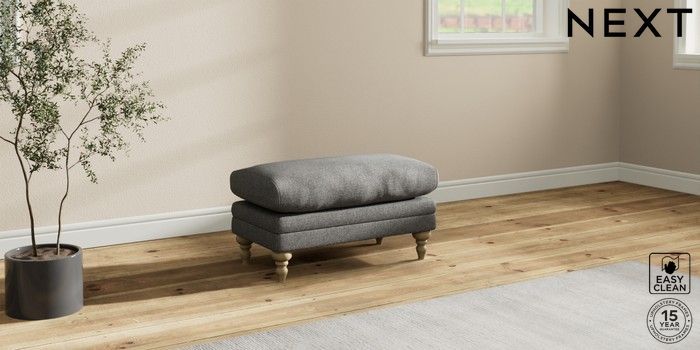 7.2.10 Hutton Deep Relaxed Sit Footstool Tweedy Blend Easy Clean Dark Grey High Turned - Light | Made Click here to use our website with more accessibility support, for example screen readers