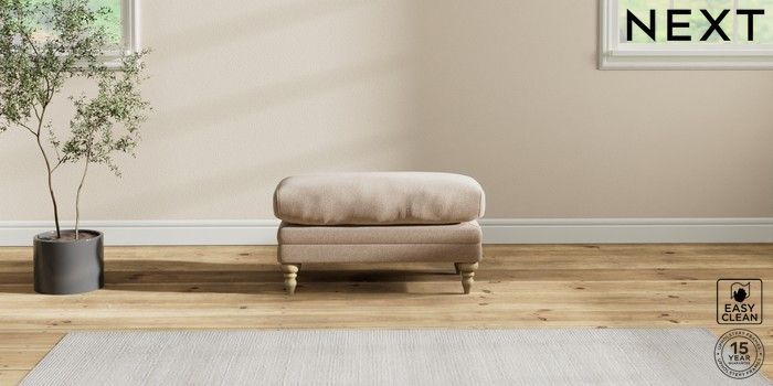 7.2.10 Hutton Deep Relaxed Sit Footstool Tweedy Blend Easy Clean Light Dove Natural High Turned - Light | Made Click here to use our website with more accessibility support, for example screen readers