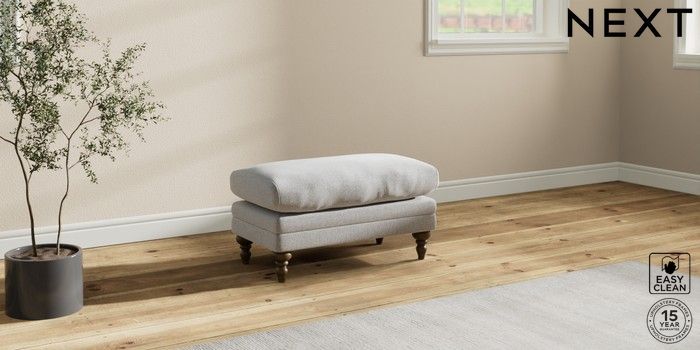 7.2.10 Hutton Deep Relaxed Sit Footstool Tweedy Blend Easy Clean Light Silver Grey High Turned - Mid | Made Click here to use our website with more accessibility support, for example screen readers