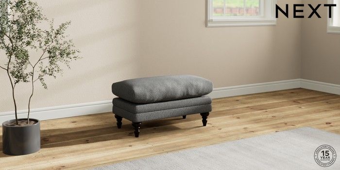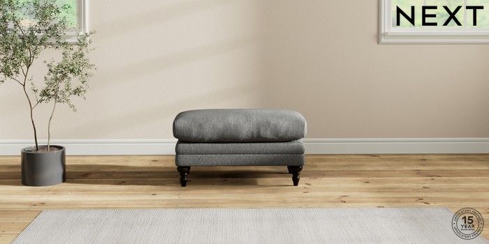 7.2.10 Hutton Deep Relaxed Sit Footstool Tweedy Chenille Dark Grey High Turned - Dark | Made Click here to use our website with more accessibility support, for example screen readers