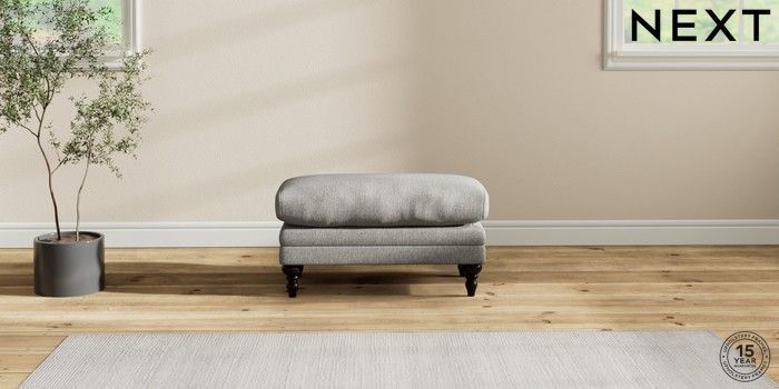 7.2.10 Hutton Deep Relaxed Sit Footstool Tweedy Chenille Mid Grey High Turned - Dark | Made Click here to use our website with more accessibility support, for example screen readers