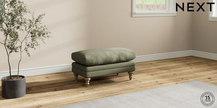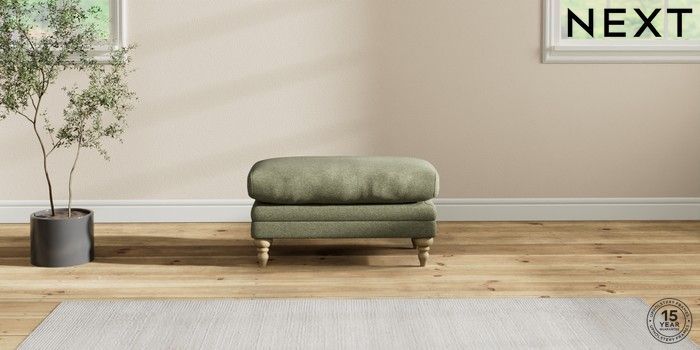 7.2.10 Hutton Deep Relaxed Sit Footstool Tweedy Chenille Mid Moss Green High Turned - Light | Made Click here to use our website with more accessibility support, for example screen readers