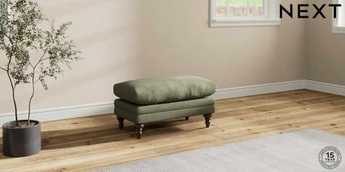 7.2.10 Hutton Deep Relaxed Sit Footstool Tweedy Chenille Mid Moss Green High Turned - Mid | Made Click here to use our website with more accessibility support, for example screen readers