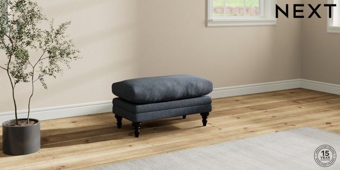 7.2.10 Hutton Deep Relaxed Sit Footstool Tweedy Chenille Navy Blue High Turned - Dark | Made Click here to use our website with more accessibility support, for example screen readers