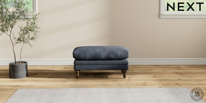 7.2.10 Hutton Deep Relaxed Sit Footstool Tweedy Chenille Navy Blue High Turned - Mid | Made Click here to use our website with more accessibility support, for example screen readers
