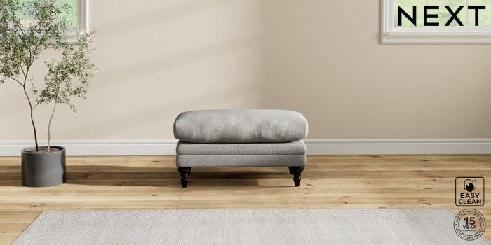 7.2.10 Hutton Deep Relaxed Sit Footstool Woven Chenille Easy Clean Light Grey High Turned - Dark | Made Click here to use our website with more accessibility support, for example screen readers