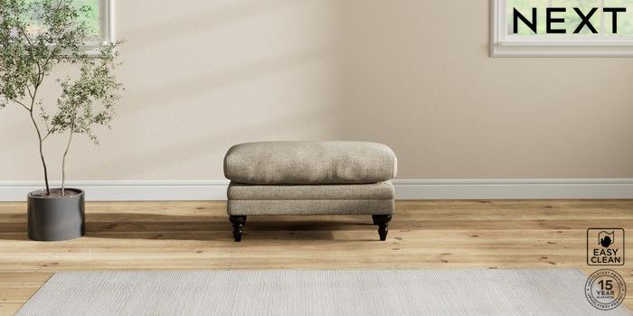 7.2.10 Hutton Deep Relaxed Sit Footstool Woven Chenille Easy Clean Mid Natural High Turned - Dark | Made Click here to use our website with more accessibility support, for example screen readers