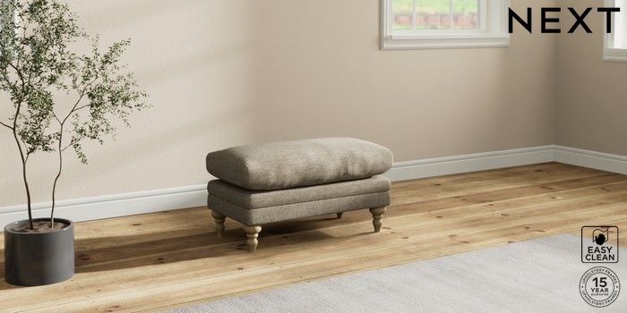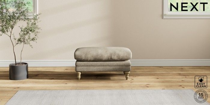 7.2.10 Hutton Deep Relaxed Sit Footstool Woven Chenille Easy Clean Mid Natural High Turned - Light | Made Click here to use our website with more accessibility support, for example screen readers