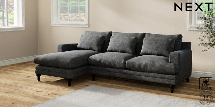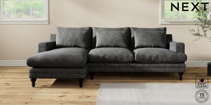 7.2.10 Hutton Deep Relaxed Sit Medium Sofa Chaise - Left Hand Boucle Weave Easy Clean Charcoal Grey Country Turned - Dark | Made Click here to use our website with more accessibility support, for example screen readers