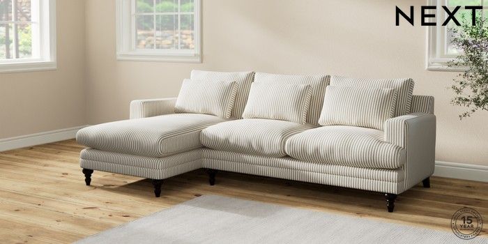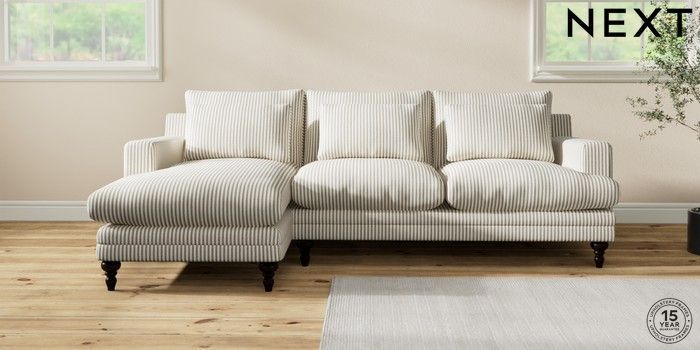 7.2.10 Hutton Deep Relaxed Sit Medium Sofa Chaise - Left Hand Chenille Stripe Moss Green Country Turned - Dark | Made Click here to use our website with more accessibility support, for example screen readers