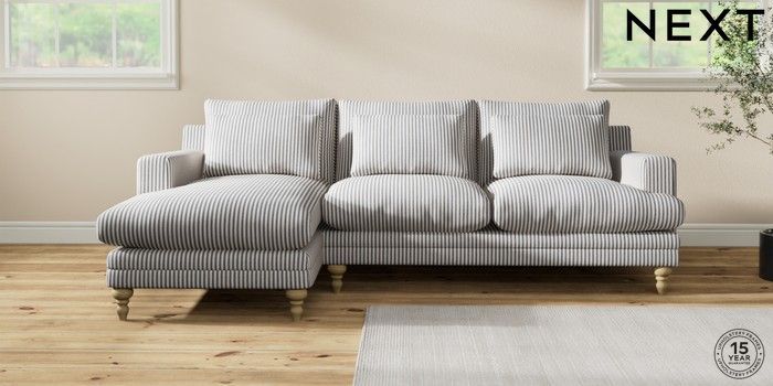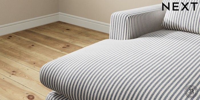 7.2.10 Hutton Deep Relaxed Sit Medium Sofa Chaise - Left Hand Chenille Stripe Slate Blue Country Turned - Light | Made Click here to use our website with more accessibility support, for example screen readers