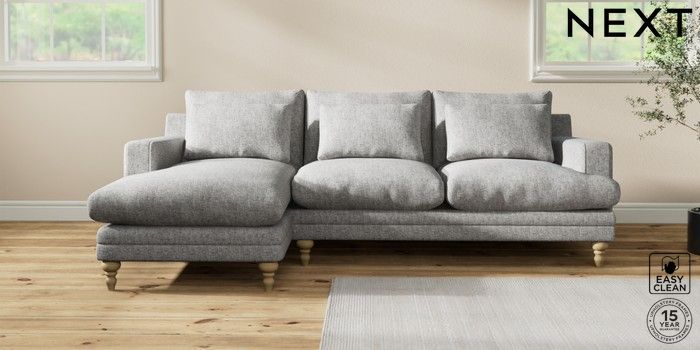 7.2.10 Hutton Deep Relaxed Sit Medium Sofa Chaise - Left Hand Chunky Boucle Easy Clean Light Grey Country Turned - Light | Made Click here to use our website with more accessibility support, for example screen readers