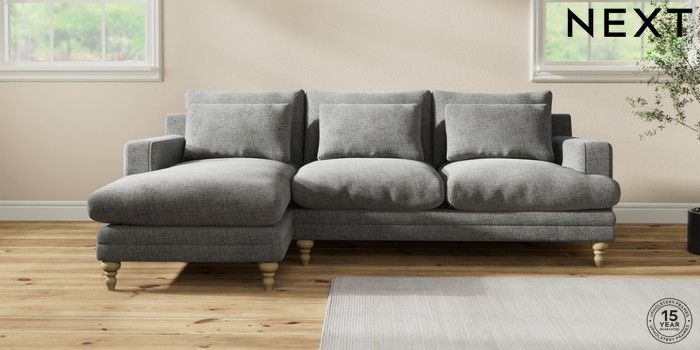 7.2.10 Hutton Deep Relaxed Sit Medium Sofa Chaise - Left Hand Chunky Chenille Dark Grey Country Turned - Light | Made Click here to use our website with more accessibility support, for example screen readers