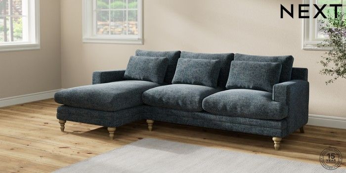 7.2.10 Hutton Deep Relaxed Sit Medium Sofa Chaise - Left Hand Chunky Chenille Dark Navy Blue Country Turned - Light | Made Click here to use our website with more accessibility support, for example screen readers