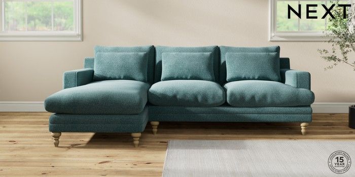 7.2.10 Hutton Deep Relaxed Sit Medium Sofa Chaise - Left Hand Chunky Chenille Mid Teal Green Country Turned - Light | Made Click here to use our website with more accessibility support, for example screen readers