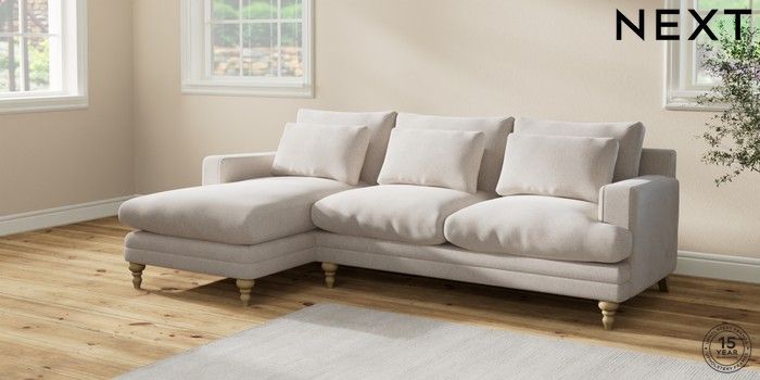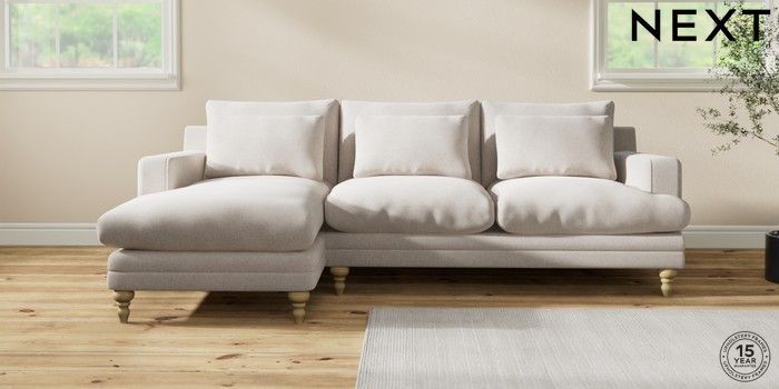 7.2.10 Hutton Deep Relaxed Sit Medium Sofa Chaise - Left Hand Chunky Chenille Oyster Country Turned - Light | Made Click here to use our website with more accessibility support, for example screen readers