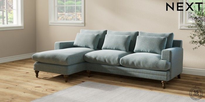 7.2.10 Hutton Deep Relaxed Sit Medium Sofa Chaise - Left Hand Chunky Marl Mid Blue Country Turned - Mid | Made Click here to use our website with more accessibility support, for example screen readers