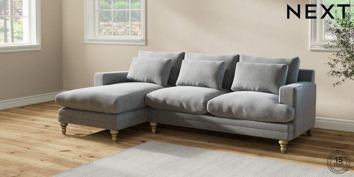 7.2.10 Hutton Deep Relaxed Sit Medium Sofa Chaise - Left Hand Chunky Marl Mid Grey Country Turned - Light | Made Click here to use our website with more accessibility support, for example screen readers