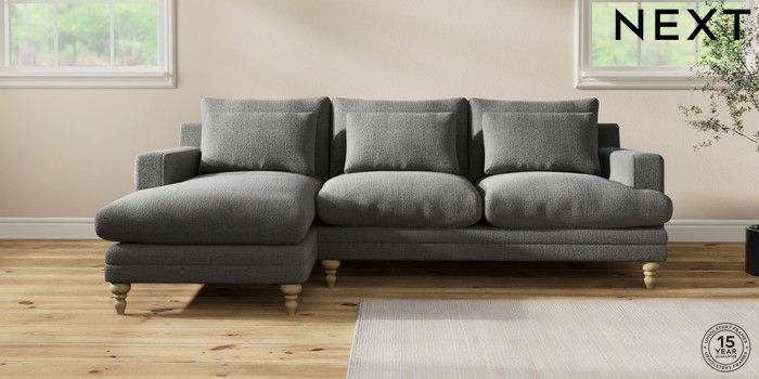 7.2.10 Hutton Deep Relaxed Sit Medium Sofa Chaise - Left Hand Chunky Texture Dark Grey Country Turned - Light | Made Click here to use our website with more accessibility support, for example screen readers