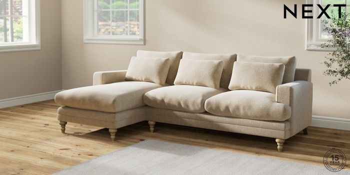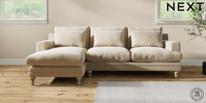 7.2.10 Hutton Deep Relaxed Sit Medium Sofa Chaise - Left Hand Chunky Weave Cream Country Turned - Light | Made Click here to use our website with more accessibility support, for example screen readers