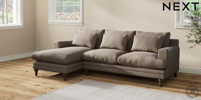 7.2.10 Hutton Deep Relaxed Sit Medium Sofa Chaise - Left Hand Chunky Weave Dark Natural Country Turned - Mid | Made Click here to use our website with more accessibility support, for example screen readers