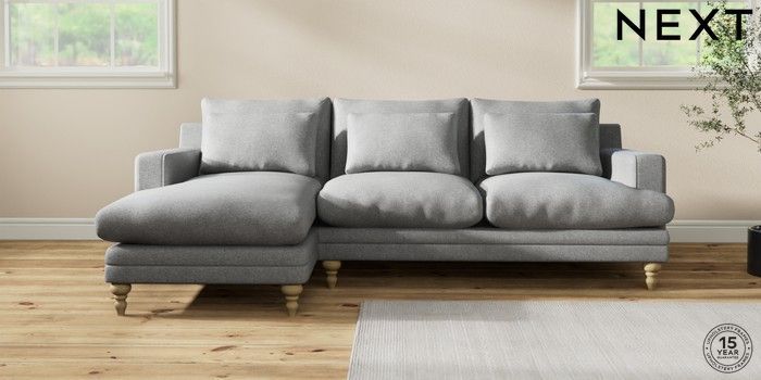 7.2.10 Hutton Deep Relaxed Sit Medium Sofa Chaise - Left Hand Chunky Weave Mid Grey Country Turned - Light | Made Click here to use our website with more accessibility support, for example screen readers