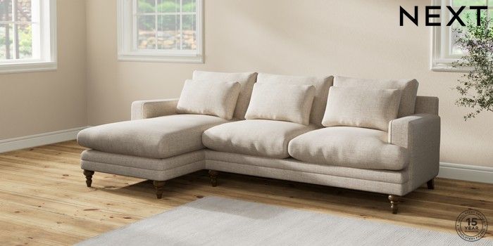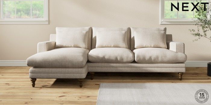 7.2.10 Hutton Deep Relaxed Sit Medium Sofa Chaise - Left Hand Chunky Weave Mid Natural Country Turned - Mid | Made Click here to use our website with more accessibility support, for example screen readers