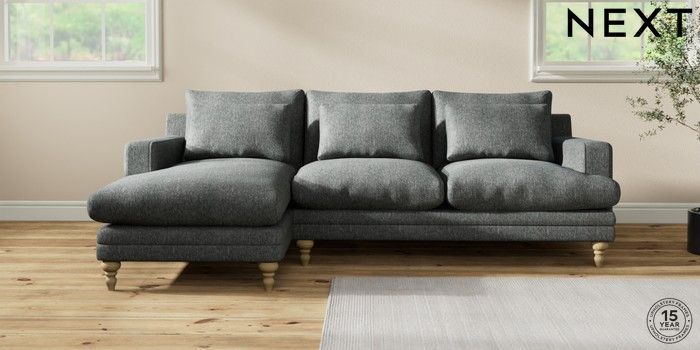 7.2.10 Hutton Deep Relaxed Sit Medium Sofa Chaise - Left Hand Cotswold Chenille Dark Grey Country Turned - Light | Made Click here to use our website with more accessibility support, for example screen readers