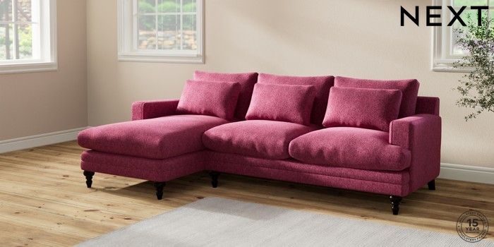 7.2.10 Hutton Deep Relaxed Sit Medium Sofa Chaise - Left Hand Cotswold Chenille Dark Raspberry Pink Country Turned - Dark | Made Click here to use our website with more accessibility support, for example screen readers