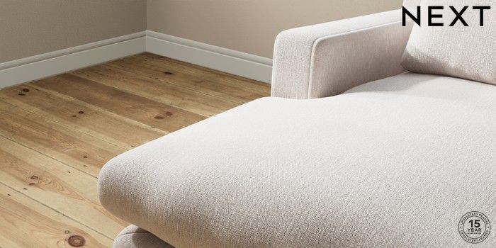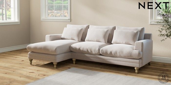 7.2.10 Hutton Deep Relaxed Sit Medium Sofa Chaise - Left Hand Cotswold Chenille Oyster Country Turned - Light | Made Click here to use our website with more accessibility support, for example screen readers